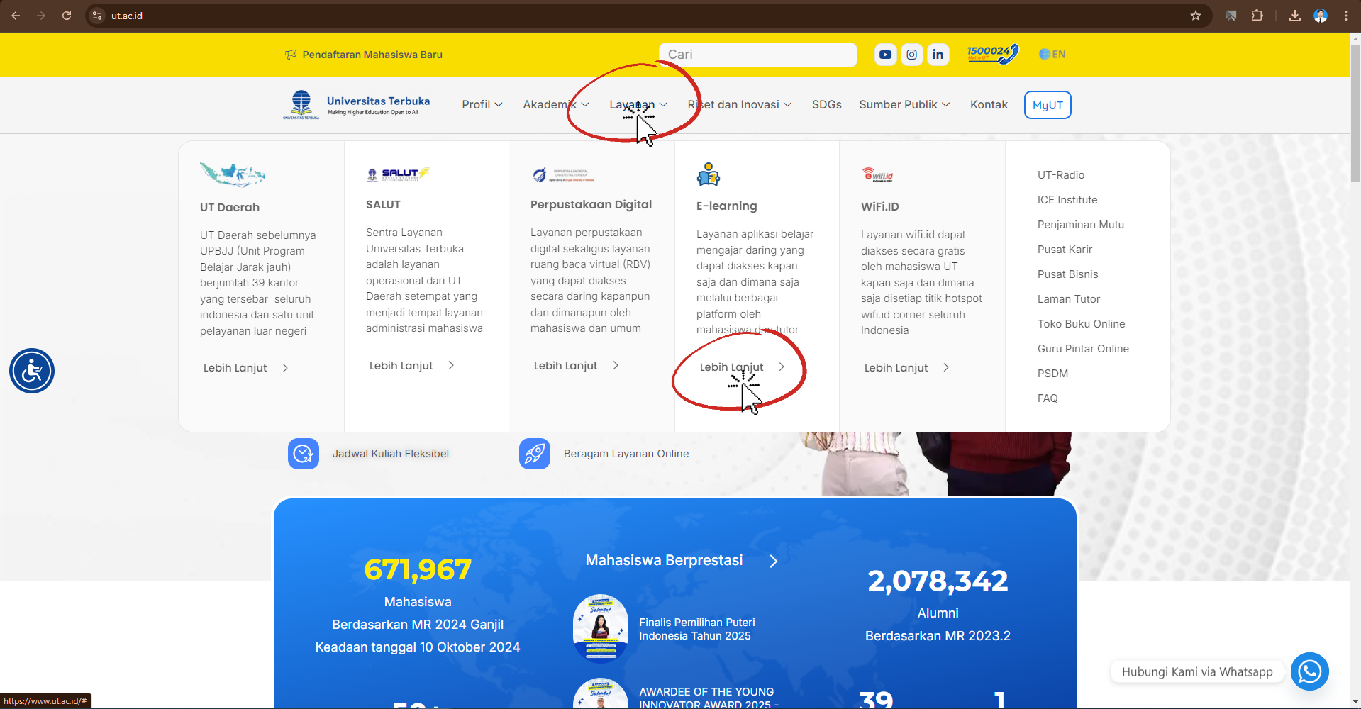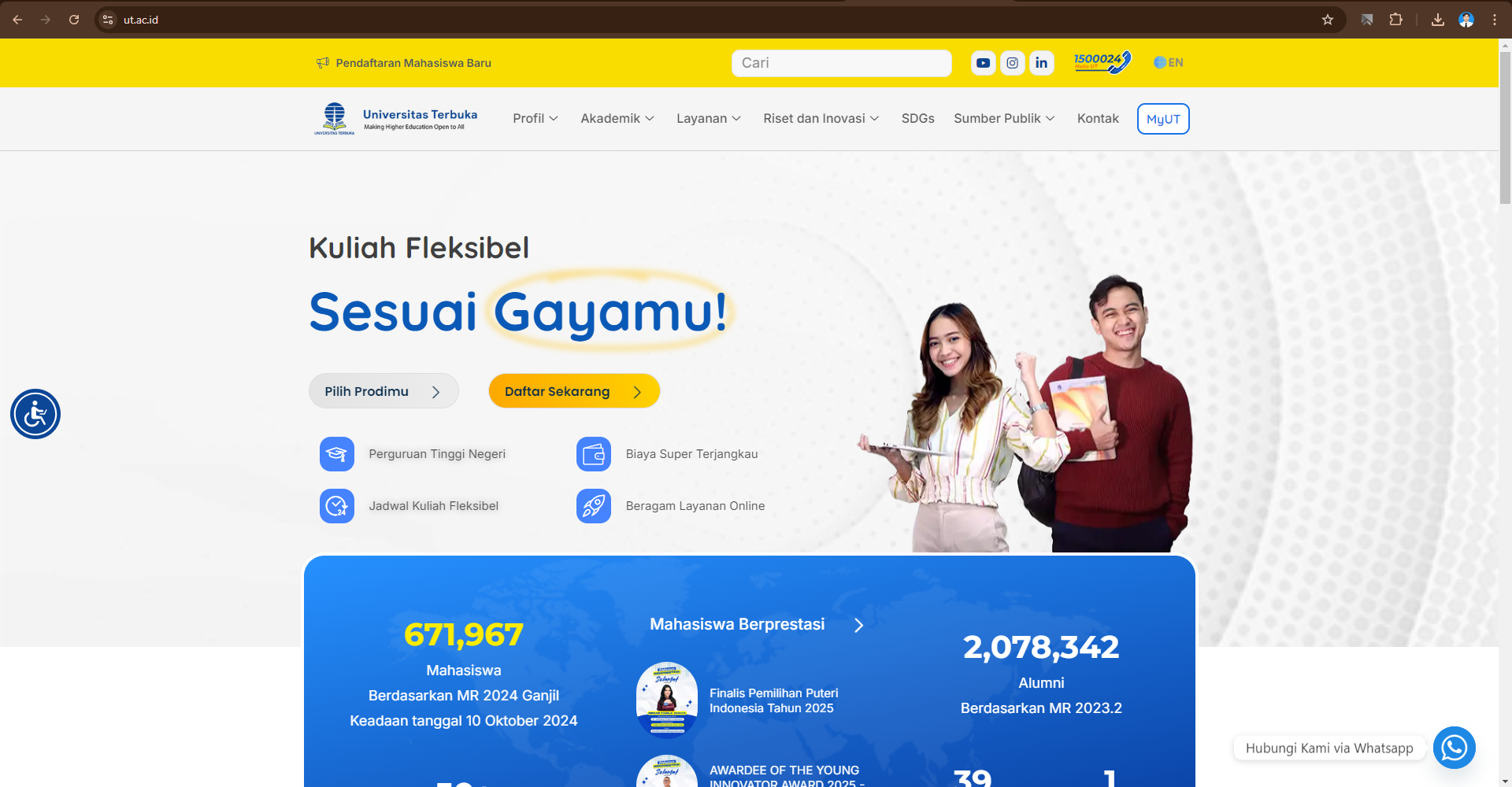 a. Buka https://www.ut.ac.id pada browser yang Anda miliki (Mozila firefox, Google Chrome, Microsoft Edge). dan berikut pada tampilan awal halaman web